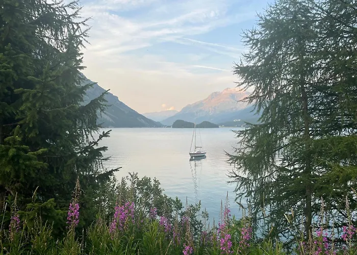Maak een rustige wandeling van 5 minuten naar het hart van het stadscentrum van Silvaplana.